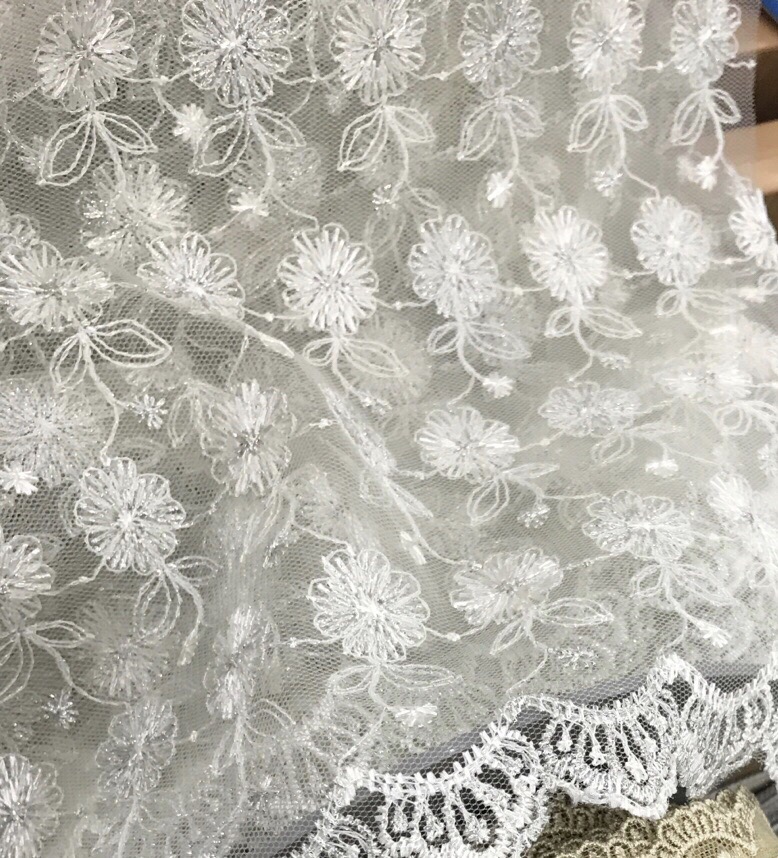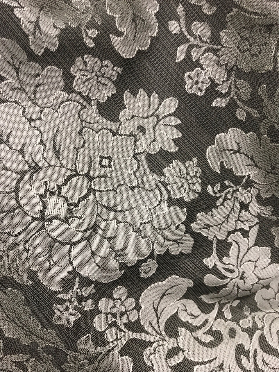 O.K. – I was happy enough with my decision. Also that day, I stumbled across a beautiful lace that will still be incorporated into the dress. See below. There are hints of silver thread that are hard for a photo to capture…