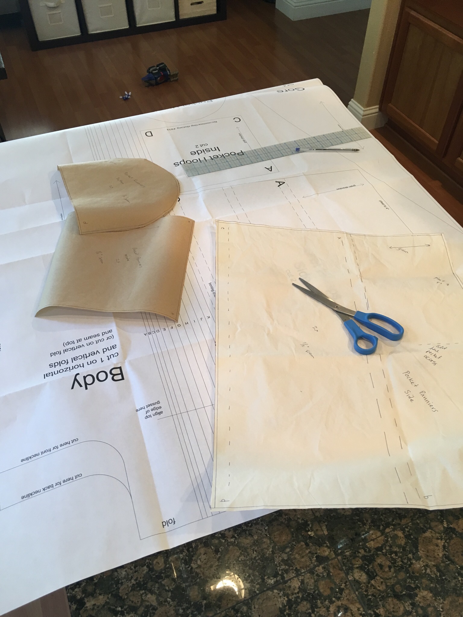 So with that bit of info, I set out to trace off the patterns for the pocket panniers. I always trace the patterns and work from the traced off patterns. Then I have intact patterns that I can lend or give away. Sure, it takes a bit more time, in the end, you won’t remember that and will be happy that you did it this way.
