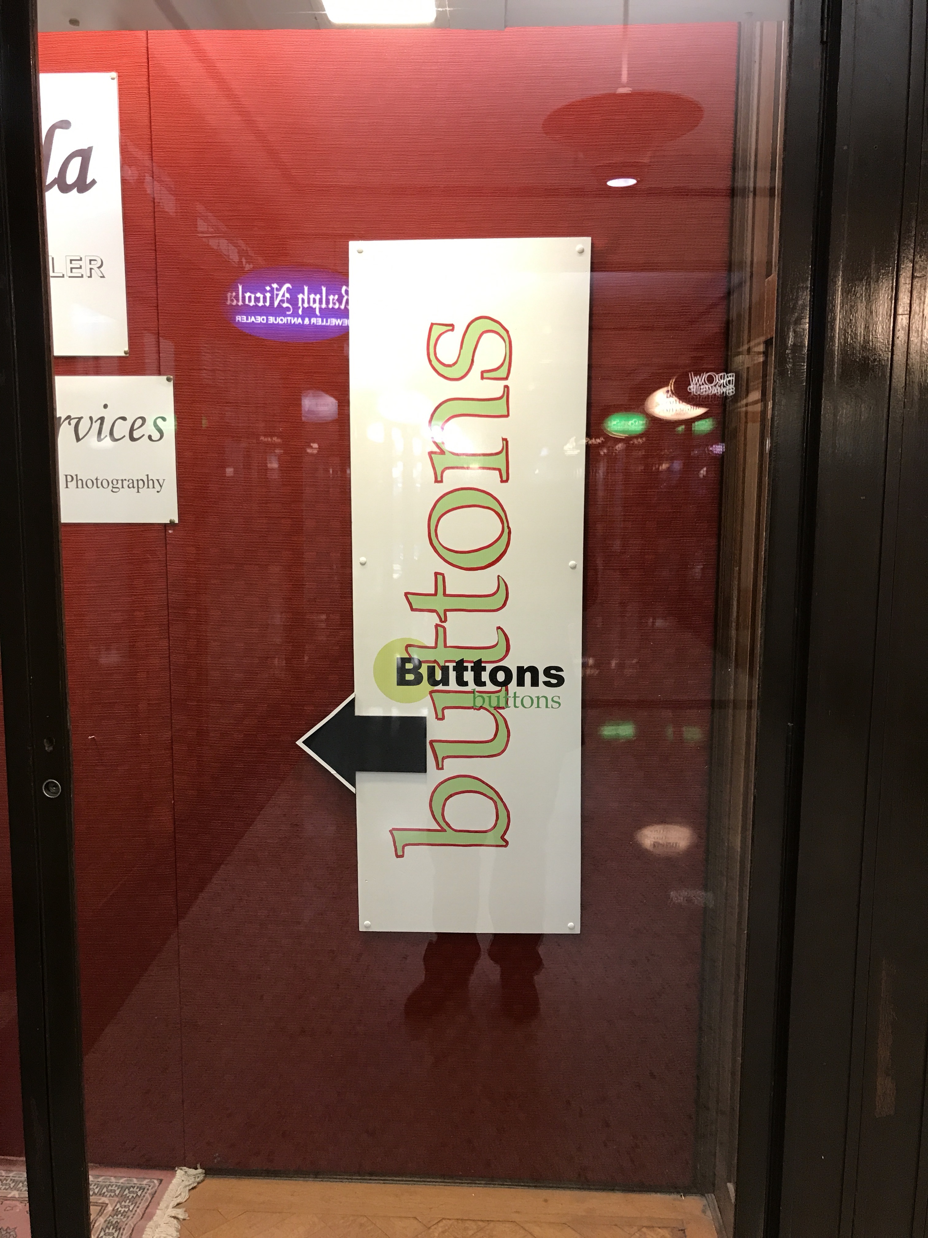 I quickly moved on to the real destination. Buttons, Button, Buttons! It was a sneaky little place to find. Of course, I was expecting it to be right at the street level, but it turned out to be in an old building (named the Dymocks building), several levels up. There were no escalators, I’m sure there were elevators, but I didn’t mind taking the steps up several floors. I began to wonder if I would ever find this little shop. And then, I saw this sign! I was on the right track!