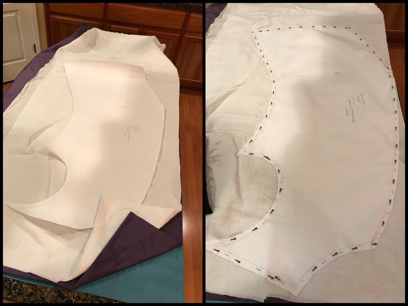 Above you can see where the fashion fabric and the interlining were basted together.