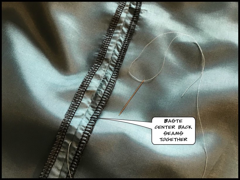 5. Baste the center back seam of the lining to the back center seam of the fashion fabric