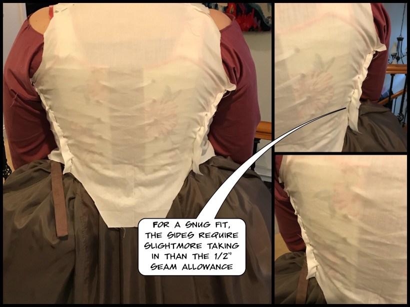 I’m using a modified construction method, blending techniques from Reconstructing History and supplementing with my copy of The American Duchess Guide to 18th Century Dressmaking by Cox and Stowell.
