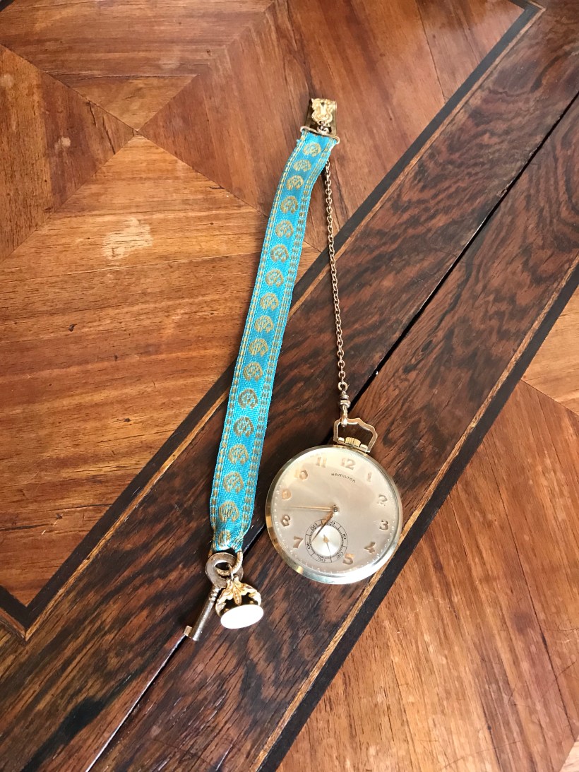When I received my MS in EE, my father gave me his father’s pocket watch. Of course, it holds some sentimental value and now I actually have a place to wear it! Some time ago, I purchased an antique watch chain off of eBay.